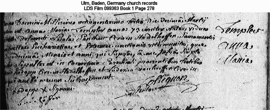 Ulm, Baden, Germany church records LDS Film 099363 Book 1 Page 278