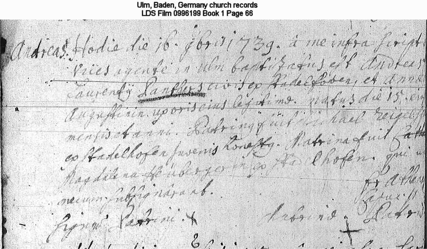 Ulm, Baden, Germany church records LDS Film 0996199 Book 1, Page 66