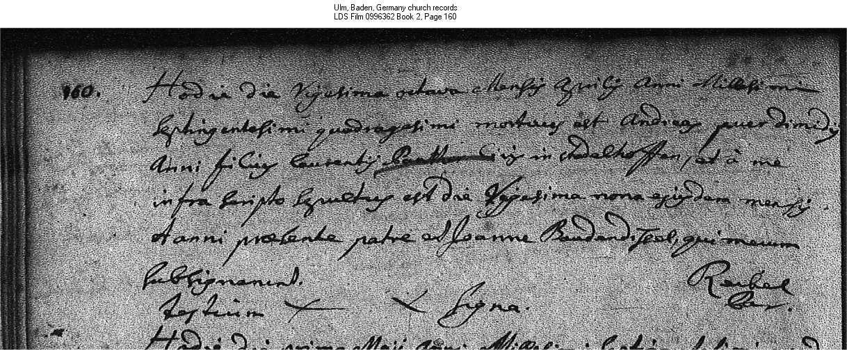 Ulm, Baden, Germany church records LDS Film 0996362 Book 2, Page 160