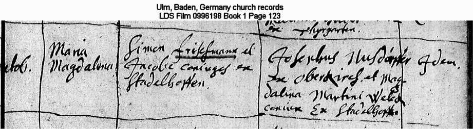Ulm, Baden, Germany church records LDS Film 0996198 Book 1 Page 123