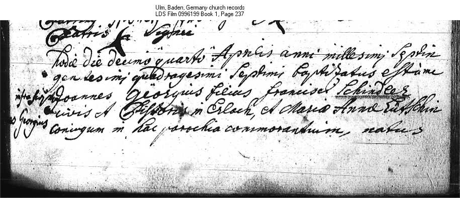 Ulm, Baden, Germany church records LDS Film 0996199 Book 1 Page 237