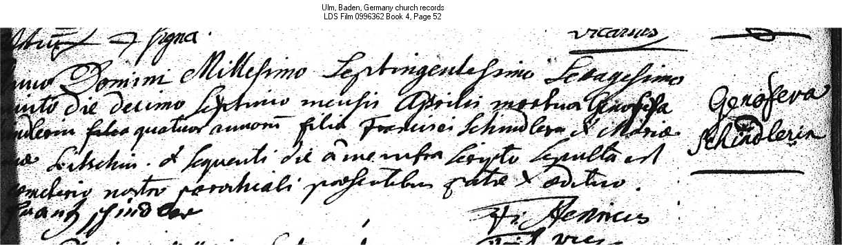 Ulm, Baden, Germany church records LDS Film 0996362 Book 4, Page 52