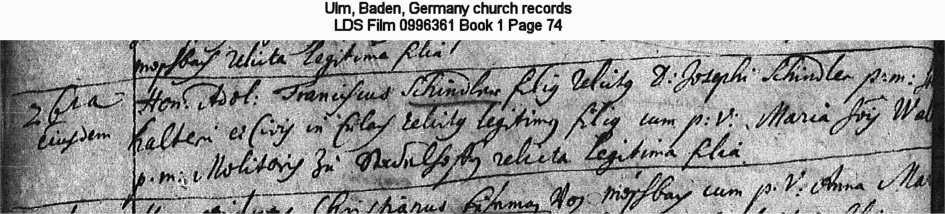| Marriage Record Ulm, Baden, Germany church records LDS Film 0996361 Book 1 Page 74 |