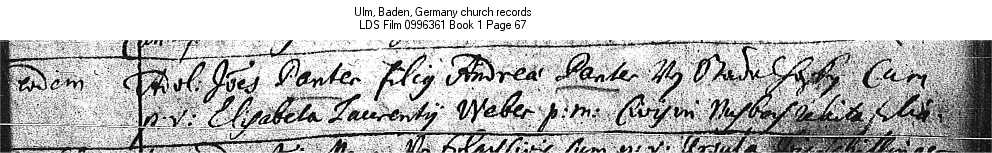 | Marriage Record Ulm, Baden, Germany church records LDS Film 0996361 Page 67 |