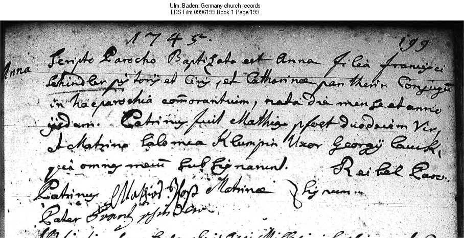 Ulm, Baden, Germany church records LDS Film 0996199 Book 1 Page 199