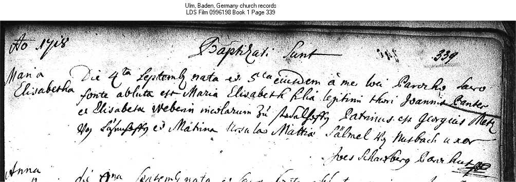 Ulm, Baden, Germany church records LDS Film 0996198 Book 1 Page 339