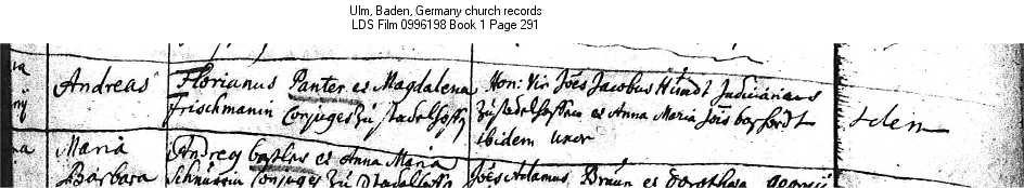 Ulm, Baden, Germany church records LDS Film 0996198 Book 1 Page 291