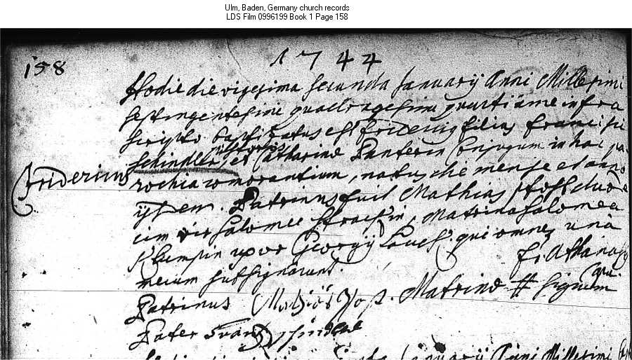 Ulm, Baden, Germany church records LDS Film 0996199 Book 1 Page 158