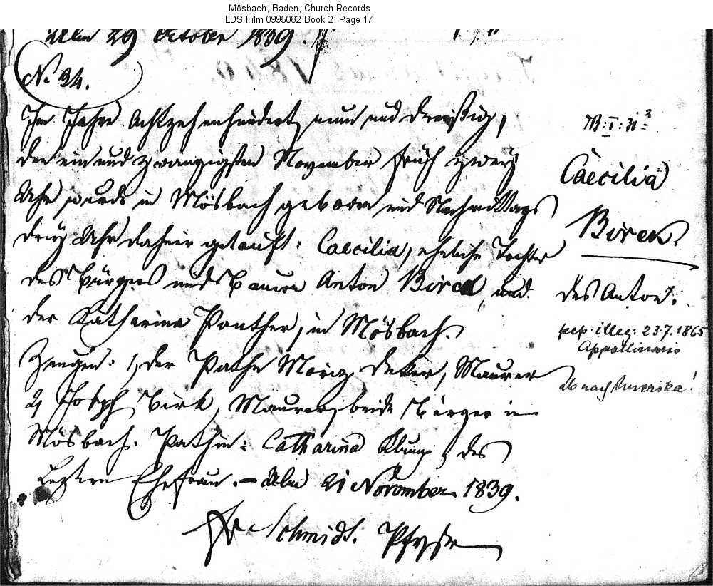 Mösbach, Baden, Germany Church Records LDS Film 0995083 Book 5 Page 31