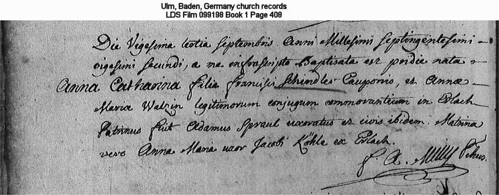 Ulm, Baden, Germany church records LDS Film 099198 Book 1 Page 408