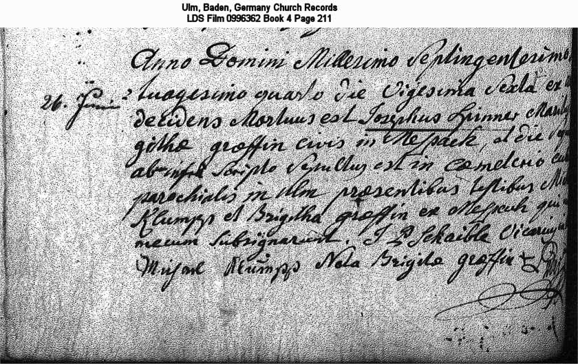 Ulm, Baden, Germany Church Records LDS Film 0996362 Book 4 Page 211