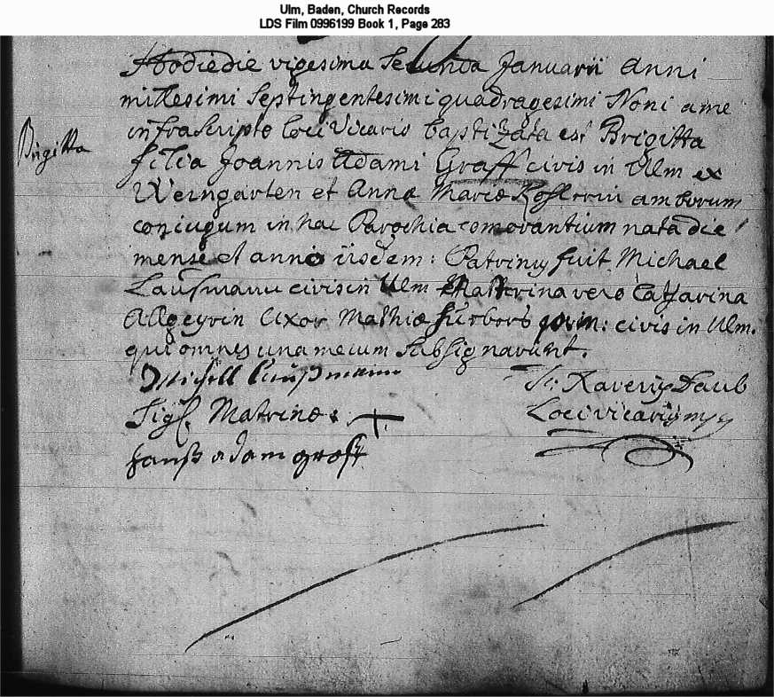Ulm, Baden, Church Records LDS Film 0996199 Book 1, Page 283