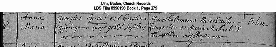 Ulm, Baden, Church Records LDS Film 0996198 Book 1, Page 279