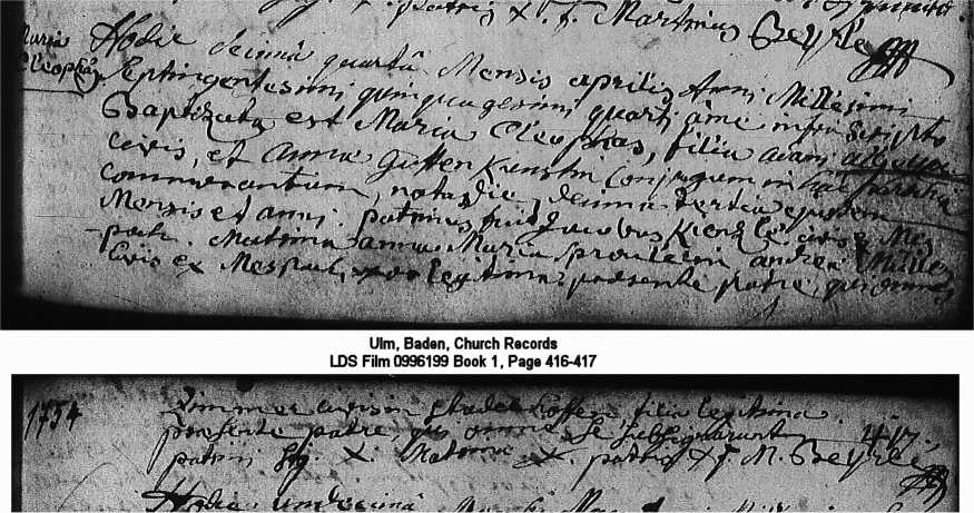 Ulm, Baden, Church Records LDS Film 0996199 Book 1, Page 416-417