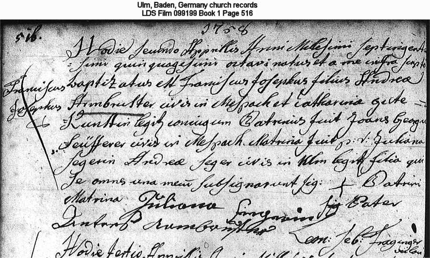 Ulm, Baden, Germany church records LDS Film 099199 Book 1 Page 516