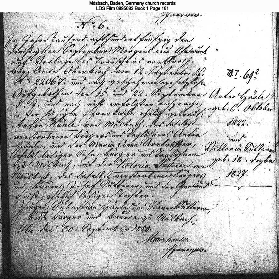 | Marriage Record Mösbach, Baden, Germany church records LDS Film 0995083 Book 1 Page 161 |