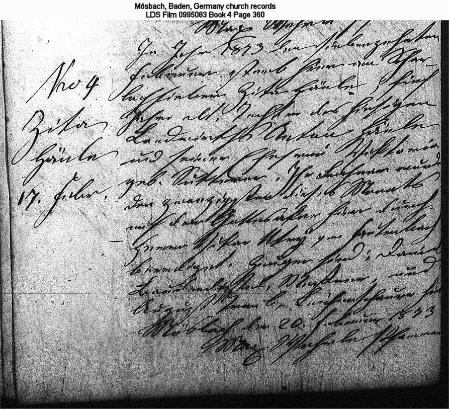 | Death Record Mösbach, Baden, Germany church records LDS Film 0995083 Book 4 Page 360 |