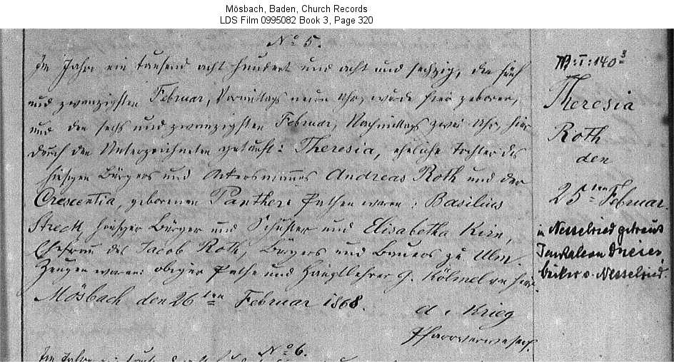 Mösbach, Baden, Church Records LDS Film 0995082 Book 3, Page 320