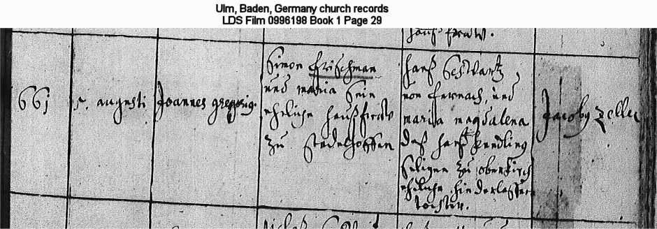 Ulm, Baden, Germany church records LDS Film 0996198 Book 1 Page 29