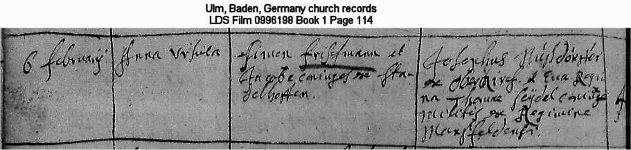 Ulm, Baden, Germany church records LDS Film 0996198 Book 1 Page 114
