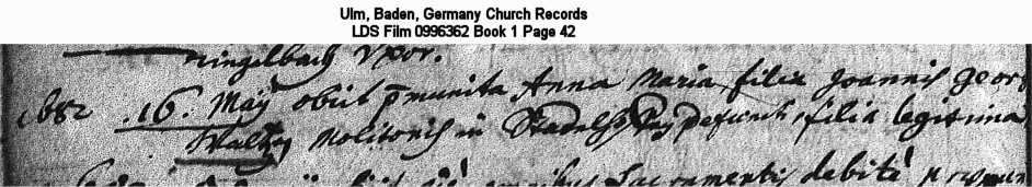 Ulm, Baden, Germany Church Records LDS Film 0996362 Book 1 Page 42