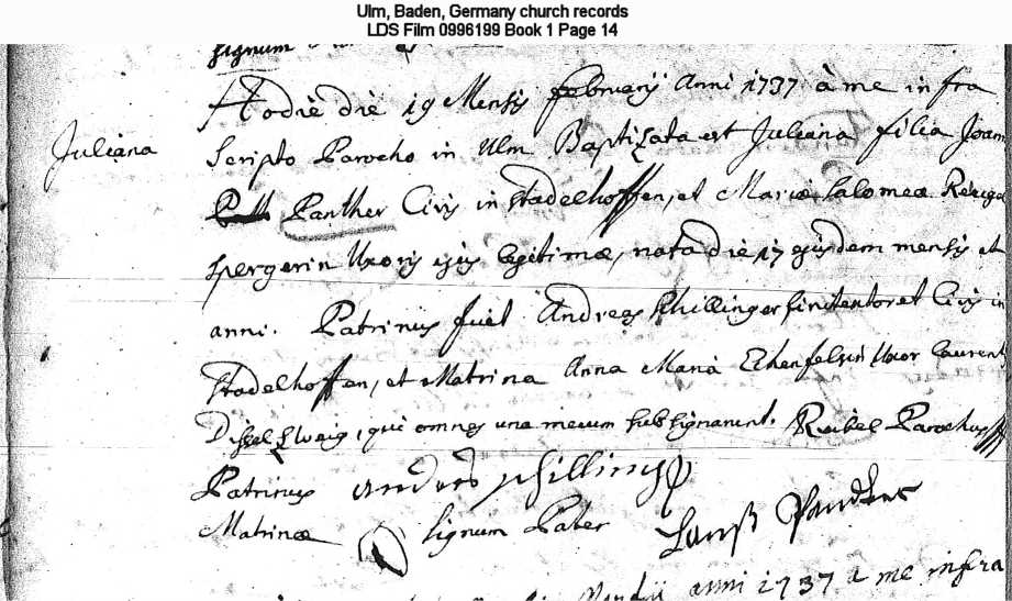 Ulm, Baden, Germany church records LDS Film 0996199 Book 1 Page 14