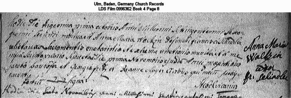 | Death Record Ulm, Baden, Germany Church Records LDS Film 0996362 Book 4 Page 8 |