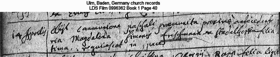 Ulm, Baden, Germany church records LDS Film 0996362 Book 1 Page 40