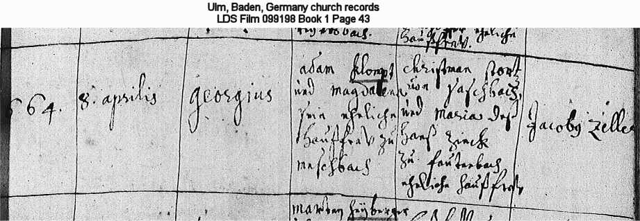 Ulm, Baden, Germany church records LDS Film 099198 Book 1 Page 43