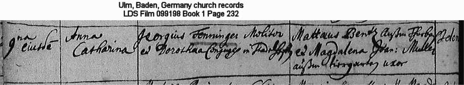 Ulm, Baden, Germany church records LDS Film 099198 Book 1 Page 232