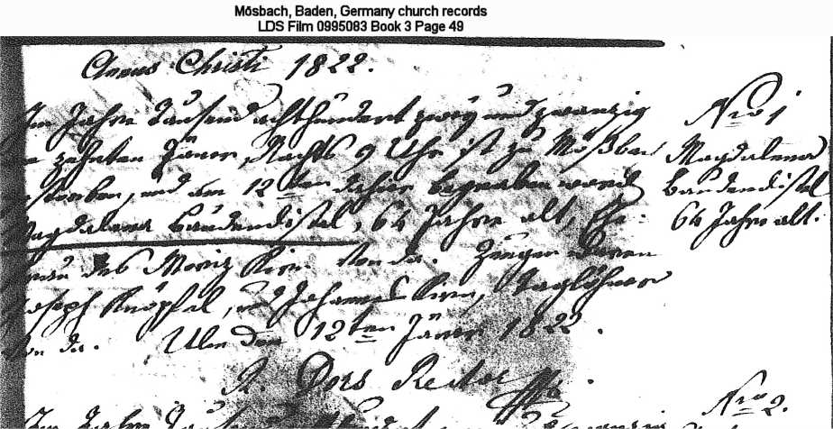| Death Record Mösbach, Baden, Germany church records LDS Film 0995083 Book 3 Page 49 |