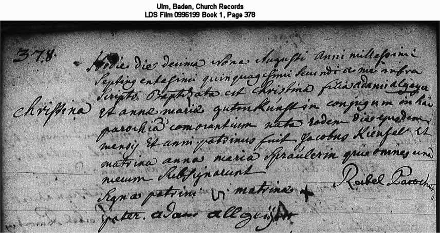 Ulm, Baden, Church Records LDS Film 0996199 Book 1, Page 378