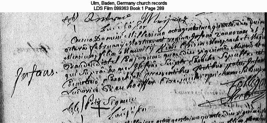 Ulm, Baden, Germany church records LDS Film 099363 Book 1 Page 289