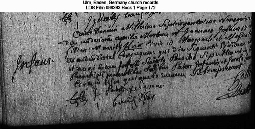 Ulm, Baden, Germany church records LDS Film 099363 Book 1 Page 172