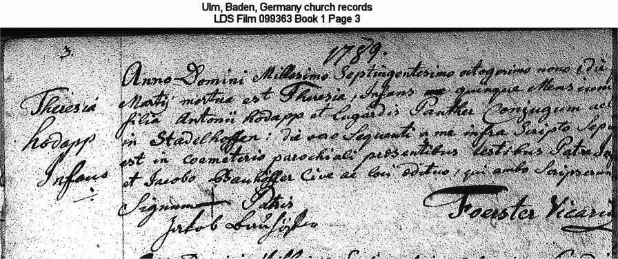 Ulm, Baden, Germany church records LDS Film 099363 Book 1 Page 3