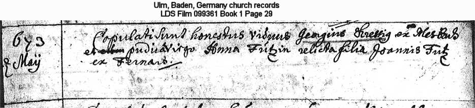 Ulm, Baden, Germany church records LDS Film 099361 Book 1 Page 29