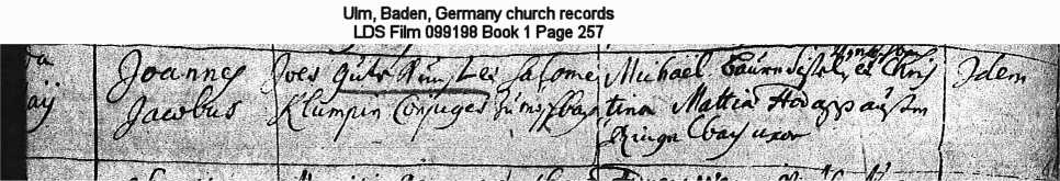 Ulm, Baden, Germany church records LDS Film 099198 Book 1 Page 257