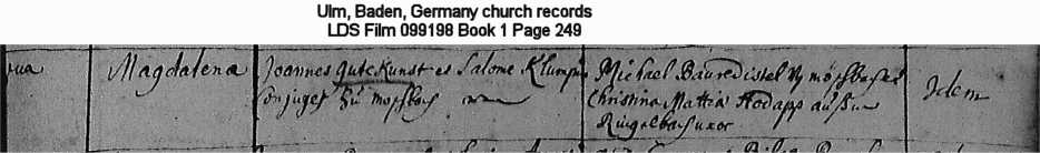 Ulm, Baden, Germany church records LDS Film 099198 Book 1 Page 249