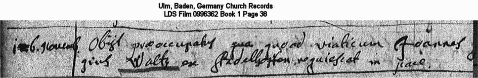 Ulm, Baden, Germany Church Records LDS Film 0996362 Book 1 Page 38