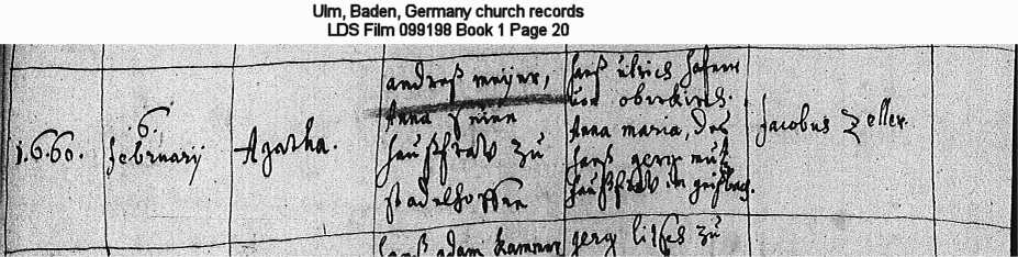Ulm, Baden, Germany church records LDS Film 099198 Book 1 Page 20