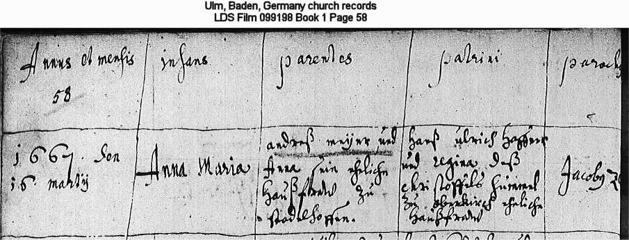 Ulm, Baden, Germany church records LDS Film 099198 Book 1 Page 58