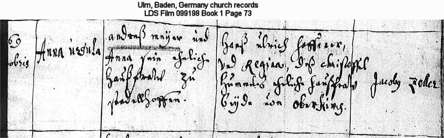 Ulm, Baden, Germany church records LDS Film 099198 Book 1 Page 73
