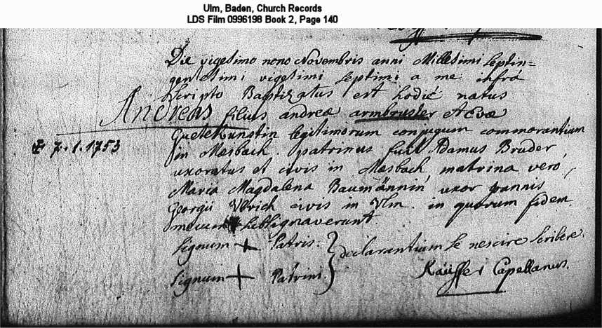 Ulm, Baden, Church Records LDS Film 0996198 Book 2, Page 140