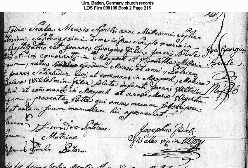 Ulm, Baden, Germany church records LDS Film 099199 Book 2 Page 215