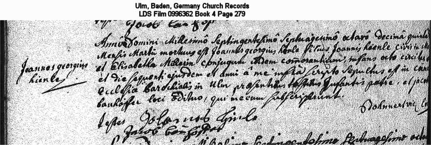Ulm, Baden, Germany Church Records LDS Film 0996362 Book 4 Page 279