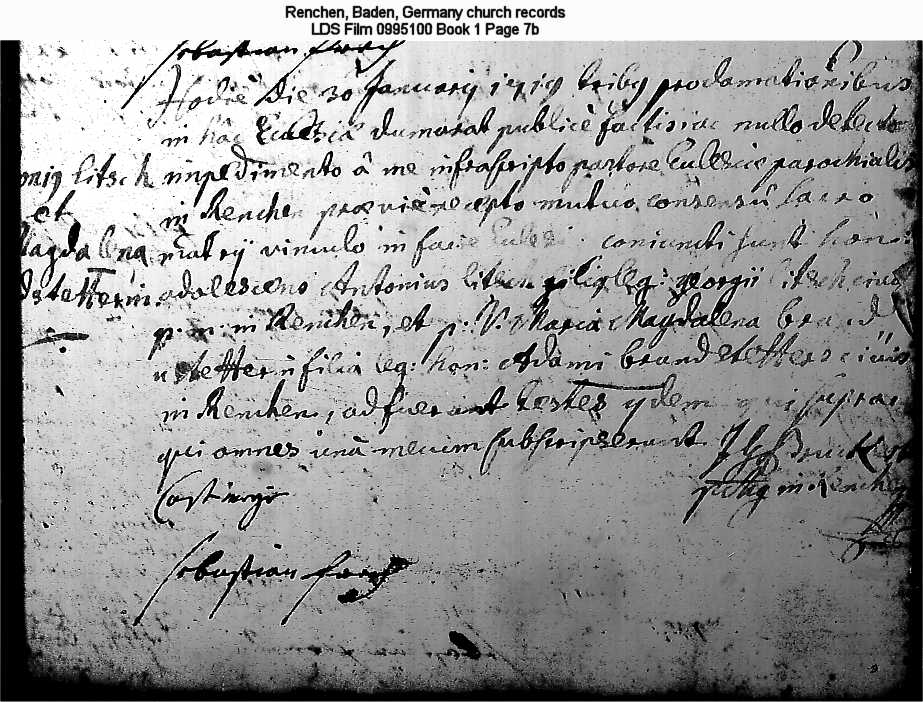 Renchen, Baden, Germany church records LDS Film 0995100 Book 1 Page 7b