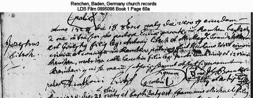 Renchen, Baden, Germany church records LDS Film 0995096 Book 1 Page 60a