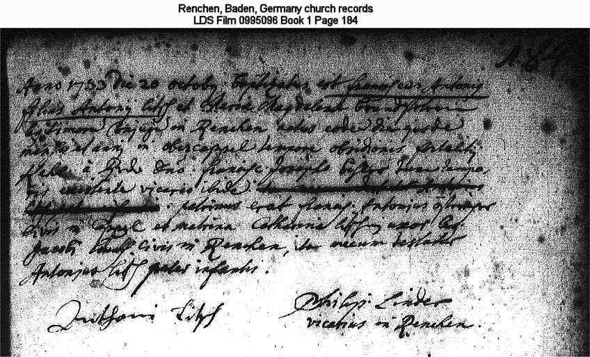 Renchen, Baden, Germany church records LDS Film 0995096 Book 1 Page 184