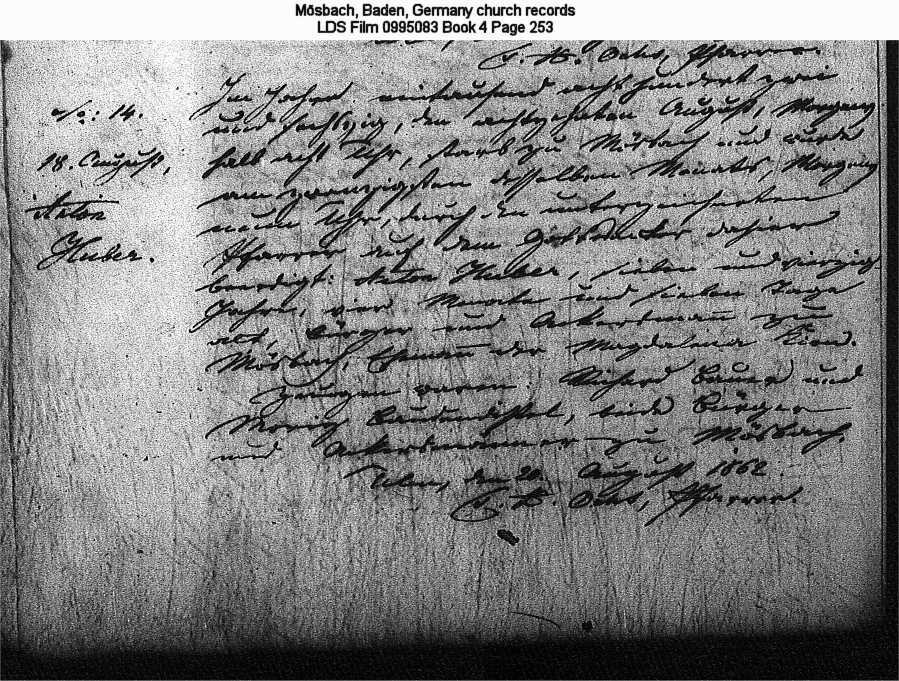 | Death Record Mösbach, Baden, Germany church records LDS Film 0995083 Book 4 Page 253 |