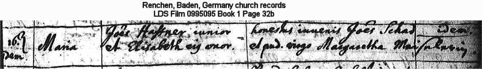 | Birth Record Renchen, Baden, Germany church records LDS Film 0995095 Book 1 Page 32b |